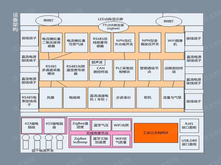 實(shí)訓臺支持0-5V/0-10V/4-20mA/0-20mA模擬量、開(kāi)關(guān)量、數字量等常用工業(yè)信號采集;集成CAN、RS485工業(yè)現場(chǎng)總線(xiàn)和工業(yè)以太網(wǎng)絡(luò ),支持ModbusRTU、ModbusTCP協(xié)議;包含ZigBee、WiFi、BlueTooth短距離和LoRa、NB-IoT、LTE遠距離無(wú)線(xiàn)傳感網(wǎng)絡(luò );集成工業(yè)以太網(wǎng)網(wǎng)關(guān),具有ModbusRTU、CAN、無(wú)線(xiàn)傳感網(wǎng)等異構網(wǎng)絡(luò )協(xié)議解析功能,支持ModbusTCP工業(yè)以太網(wǎng)協(xié)議,可通過(guò)MQTT、CoAP、HTTP物聯(lián)網(wǎng)協(xié)議接入工業(yè)物聯(lián)網(wǎng)云服務(wù)平臺;支持云服務(wù)平臺本地化部署或云端部署,提供API二次開(kāi)發(fā)接口。提供基于智慧工廠(chǎng)、智慧城市、車(chē)載控制、?;返刃袠I(yè)的數據采集監控系統的嵌入式開(kāi)發(fā)、Android應用開(kāi)發(fā)、Web應用開(kāi)發(fā)、標識解析實(shí)訓案例。實(shí)訓臺主要由工業(yè)以太網(wǎng)網(wǎng)關(guān)、無(wú)線(xiàn)傳感節點(diǎn)區、網(wǎng)孔實(shí)訓區、以及臺體框架(含電源接線(xiàn)端子、傳感器接線(xiàn)端子、通信接口面板等)組成。