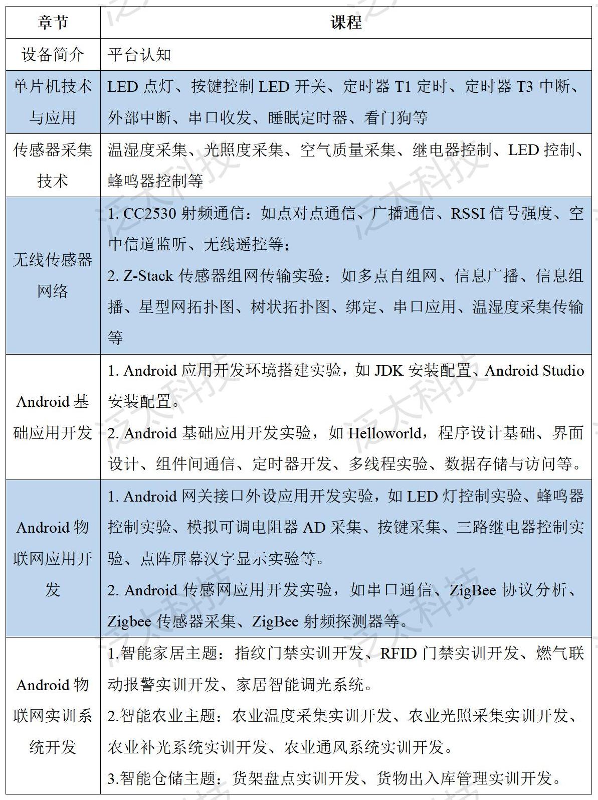 物聯(lián)網(wǎng)應用開(kāi)發(fā)實(shí)訓臺(SeaIOT-ED-DP-06),以家居安防、智能農業(yè)、智能貨架為案例,使學(xué)生了解和掌握其硬件構成、業(yè)務(wù)原理及應用開(kāi)發(fā)。