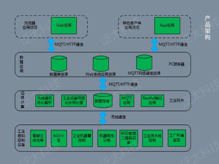 智能制造工業(yè)互聯(lián)網(wǎng)實(shí)訓沙盤(pán)(SeaIOT-EA-IM6-01),由原料倉儲工位、激光雕刻工位、視覺(jué)分揀運輸工位、包裝貼標工位、成品標識入庫工位、總控制臺共六個(gè)獨立工位拼裝組成,涵蓋立體庫位、堆垛機、加工流轉轉盤(pán)、激光雕刻機、多自由度機器臂、機器視覺(jué)檢測裝置、流水線(xiàn)傳送帶、二維碼氣動(dòng)打標裝置、RFID讀寫(xiě)模塊、條碼識讀模塊以及安裝在空壓機設備上的壓力傳感器、工廠(chǎng)環(huán)境監測傳感器、工業(yè)指示屏等工業(yè)常見(jiàn)設備,結合工業(yè)網(wǎng)關(guān)、邊緣服務(wù)器及工業(yè)互聯(lián)網(wǎng)平臺,通過(guò)工業(yè)現場(chǎng)總線(xiàn)和無(wú)線(xiàn)自組網(wǎng)通信技術(shù),實(shí)現取料、寫(xiě)碼、讀碼、加工、識別、分揀、運輸、貼標、寫(xiě)碼、讀碼、識讀二維碼、入庫等激光加工整體生產(chǎn)流程,達到工業(yè)生產(chǎn)跟蹤、產(chǎn)線(xiàn)生產(chǎn)數量統計、設備運行狀態(tài)監測、工件質(zhì)量統計等智慧化管理。