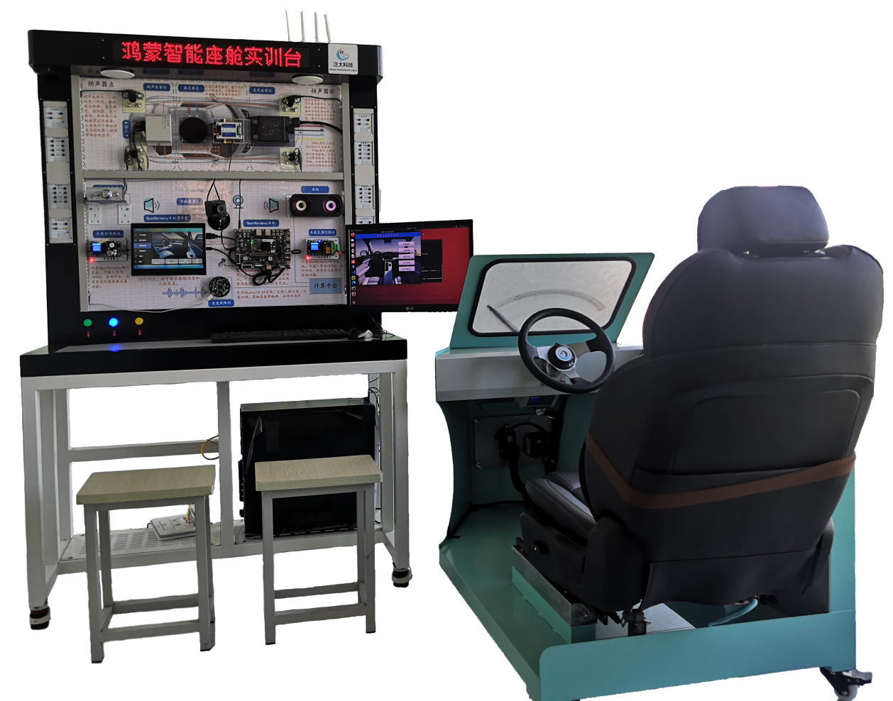 產(chǎn)品包括智能座艙實(shí)訓臺體和智能座椅艙體兩部分。